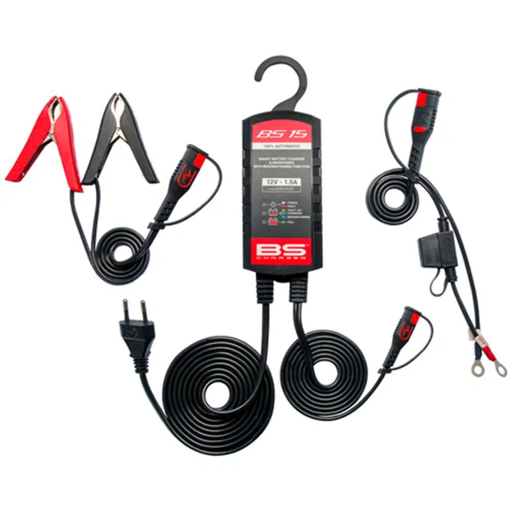 BS 15, 1.5A şarj kapasitesine sahip bir 12V akıllı akü şarj ve bakım cihazıdır. Özellikle kurşun asitli aküler için tasarlanmış olan bu otomatik şarj cihazı, 4Ah ila 30Ah arasındaki aküler için uygundur.