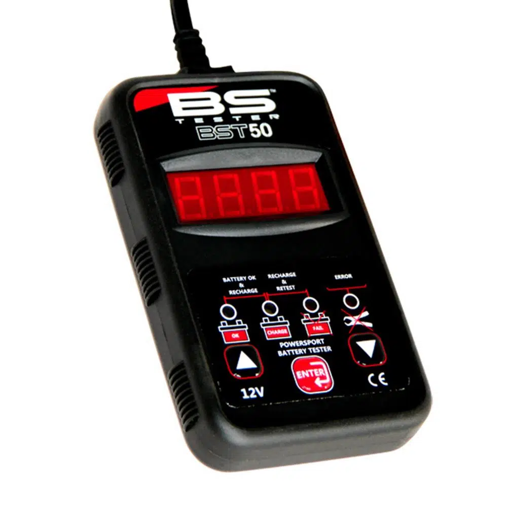 BST50, powersport aküler için özel olarak tasarlanmış bir dijital akü test cihazıdır. BS-Tester ürün yelpazesi içinde yer alan bu cihaz, gelişmiş akü ve elektrik teşhisi sağlamak için tasarlanmıştır. Patentli Tek Yük özelliğine sahip Dinamik Direnç Teknolojisi sayesinde powersport pil pazarında doğru sonuçlar elde edilir.