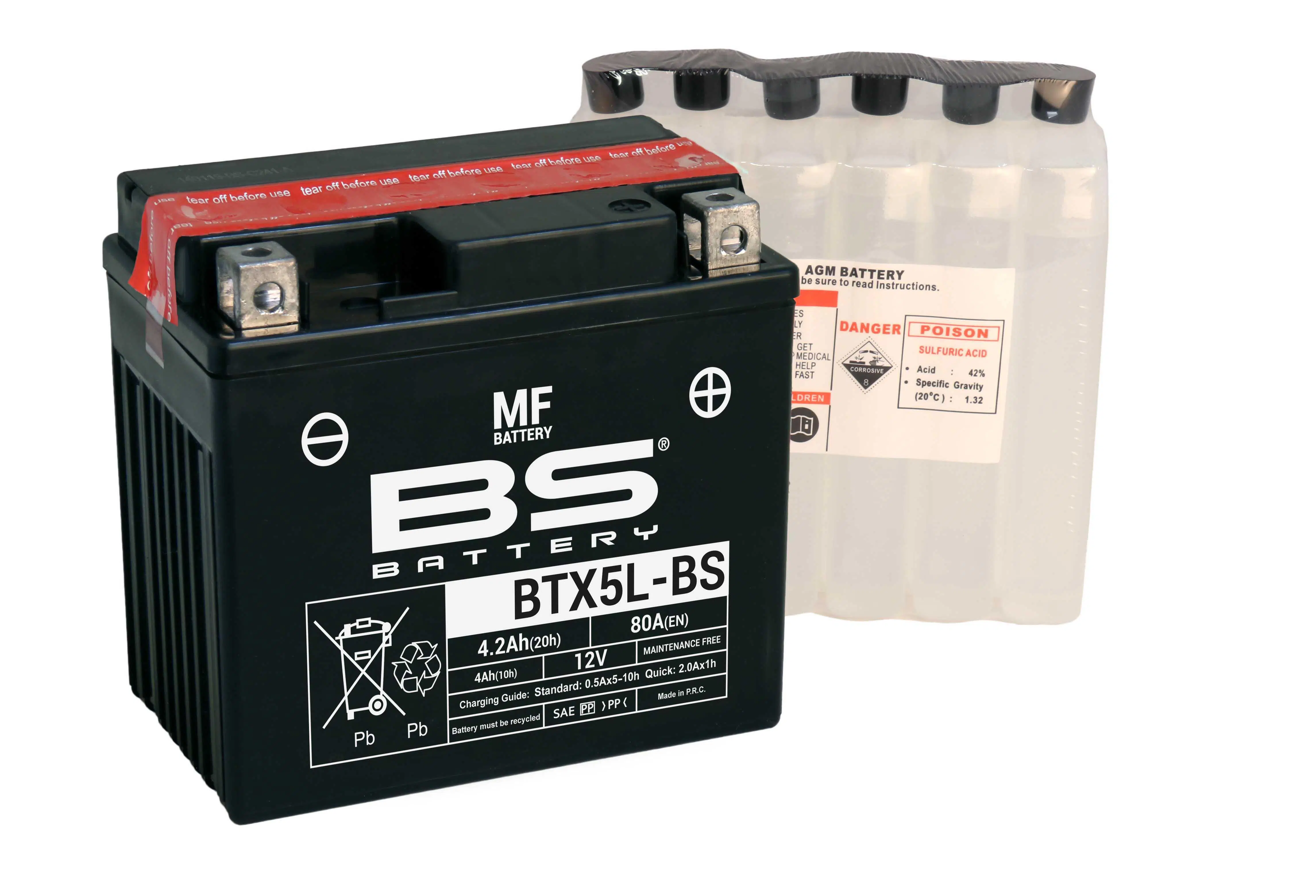 Bs-Battery BTX5L-BS 12V 4.2Ah 80CCA AGM Bakımsız Motosiklet Aküsü