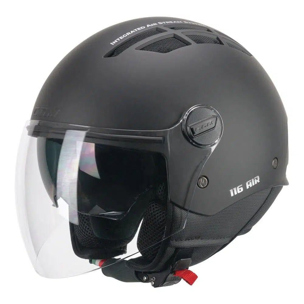 CGM 116 Serisi açık kasklar, hava akışını sağlayan büyük hava delikleriyle sıcak havalarda kullanılmak üzere ideal olup, aynı zamanda dış vizörünün uzunluğu ve hava delikleri için verilen özel kapaklar sayesinde soğuk ve yağmurlu hava koşullarında da kullanılabilir. 116 AIR, HPT (High Performance Terpolymer) malzemeden üretilmiş iki farklı dış kabuk özlçüsüne sahip olup, dört farklı yoğunlukta EPS iç katman ile donatılmıştır. Ayrıca, iç mekanizması, gizli güneş vizörü, termoformlu iç yüzey, alerjen ve antibakteriyel kumaşlardan yapılmış, kolayca çıkarılabilir ve yıkanabilir yanak pedleri ve çene altı pedlerine sahiptir. Ek olarak, mikrometrik toka, kayışa takılabilen hırsızlık önleyici halka ve kayış sabitleyici elastik içerir.