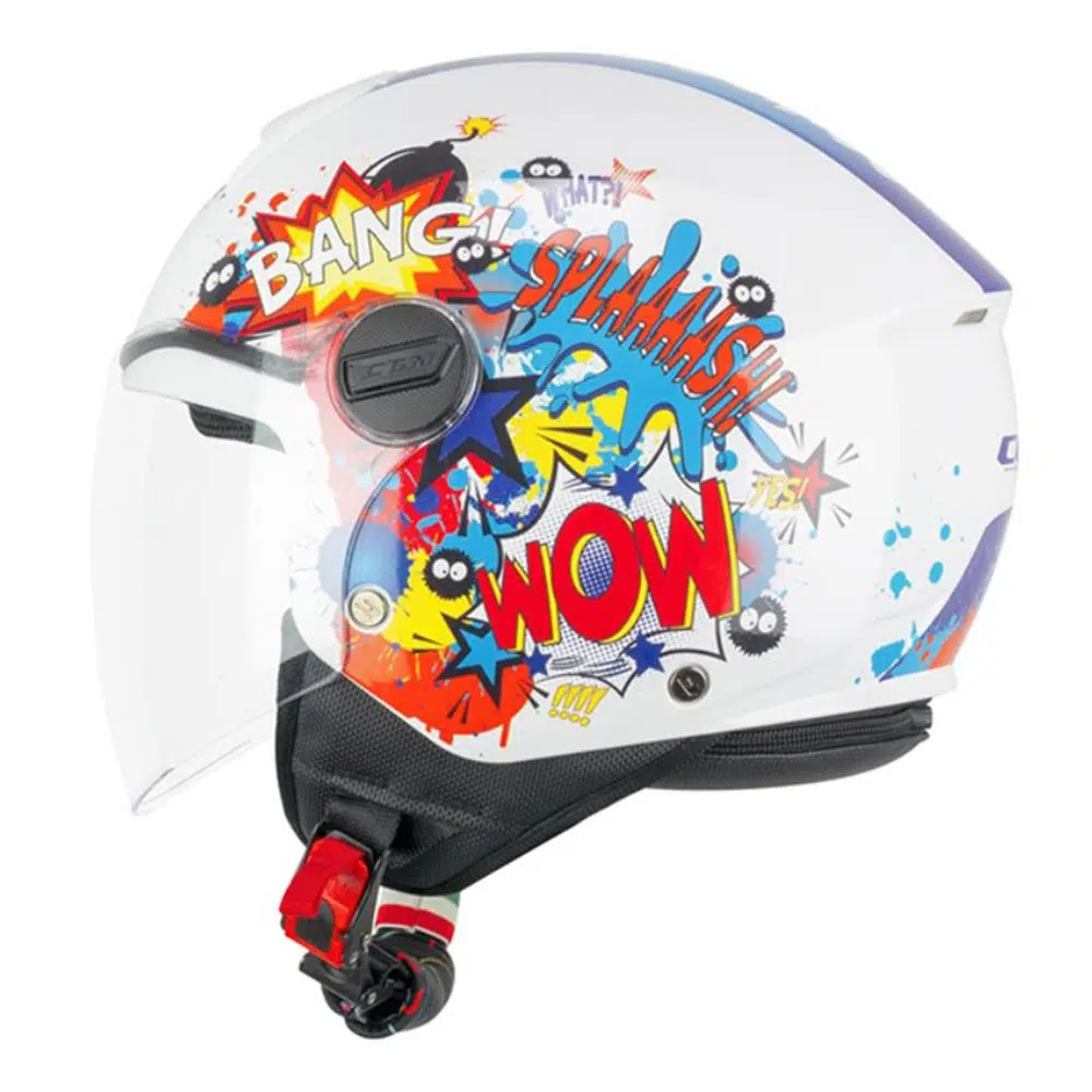 Genç kasklarının hem eğlenceli hem de güvenli olamayacağını kim söylemiş? Çocuklardan gençlere kadar farklı yaş gruplarına hitap eden 5 farklı beden seçeneğiyle özel olarak tasarlanmış bir gövdeye sahip, kafaya tam oturan hafif bir açık kasktır. Boyun rulosuyla uyumlu, çıkarılabilir ve yıkanabilir renkli iç kısımlara ve fermuarlı yanak pedlerine sahiptir. Kask, tam AIR STREAM SYSTEM havalandırma sistemi ve rüzgara karşı daha fazla koruma sağlayan uzun vizör ile donatılmıştır. Mikrometrik toka, hırsızlık önleyici halka ve elastik kayış tutucusu özelliklerini tamamlamaktadır.