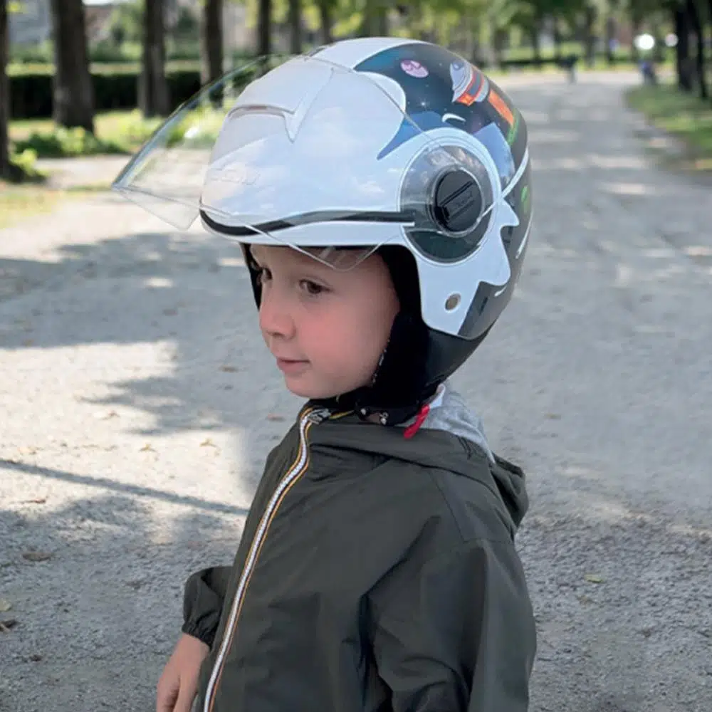 Genç kasklarının hem eğlenceli hem de güvenli olamayacağını kim söylemiş? Çocuklardan gençlere kadar farklı yaş gruplarına hitap eden 5 farklı beden seçeneğiyle özel olarak tasarlanmış bir gövdeye sahip, kafaya tam oturan hafif bir açık kasktır. Boyun rulosuyla uyumlu, çıkarılabilir ve yıkanabilir renkli iç kısımlara ve fermuarlı yanak pedlerine sahiptir. Kask, tam AIR STREAM SYSTEM havalandırma sistemi ve rüzgara karşı daha fazla koruma sağlayan uzun vizör ile donatılmıştır. Mikrometrik toka, hırsızlık önleyici halka ve elastik kayış tutucusu özelliklerini tamamlamaktadır.
