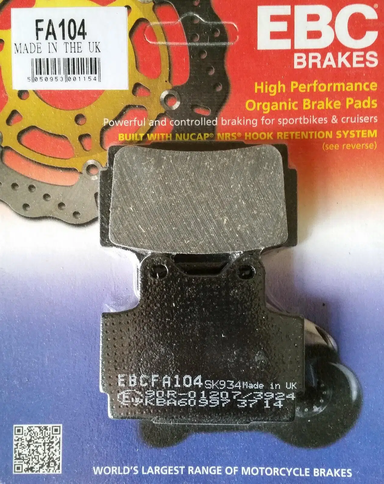 EBC Brakes™ Organik Orijinal Ekipman kalitesinde yedek motosiklet fren balataları,