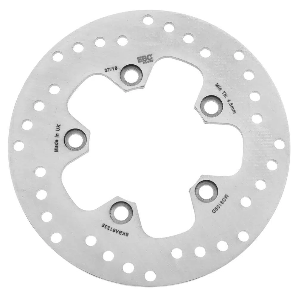 EBC SCOOTER BRAKE DISC %100 İngiliz üretimi EBC MD Serisi Çelik Fren diskleri tüm scooter ve motosikletleri için mükemmel bir üründür. EBC MD Serisi motosiklet fren disklerini konturlu profil, kendi kendini temizleyen, hafif, sağlam rotorlar ile üretmiştir. Orijinal rotorlarınız için yüksek kaliteli, doğrudan cıvatalı bir yedek parça üretmek üzere ısıl işlem görmüş ve temperlenmiş DB420 paslanmaz çelik kullanılarak %100 İngiliz yapımı. Rotorların tümü, 2 mikrondan daha az pürüzsüz bir yüzey elde edecek şekilde elmasla taşlanmıştır. Yeni, son teknoloji ürünü İtalyan özel yapım çift diskli öğütücümüze dayanan bu diskler sadece düz ve cam gibi pürüzsüz değil aynı zamanda mikronlara paraleldir – rotor titreşimi olmadığı garanti edilir