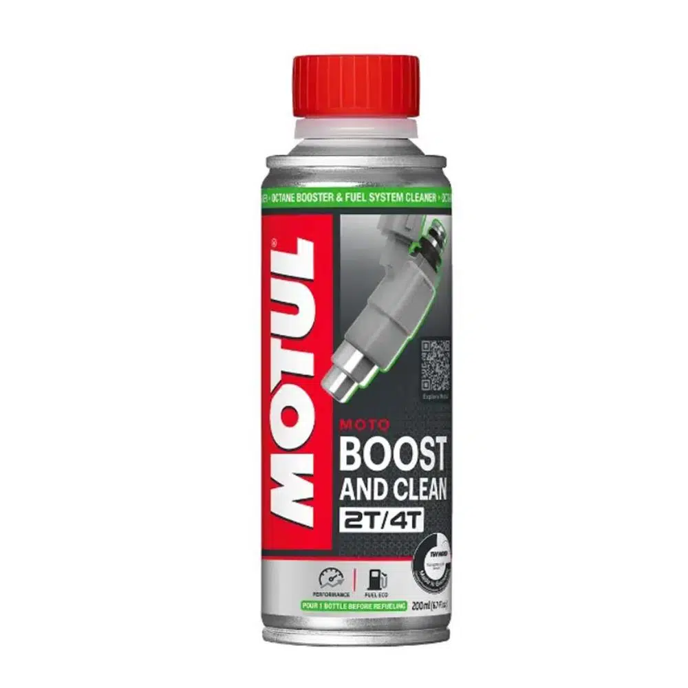 MOTUL BOOST AND CLEAN MOTO, her tür 2 Zamanlı ve 4 Zamanlı motosiklet motorunda kullanılabilen, benzine ilave edilen yakıt katkısıdır.