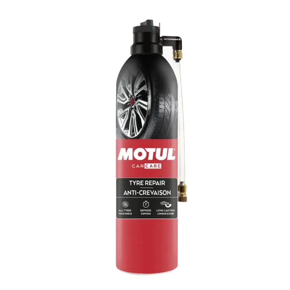 MOTUL® Tyre Repair, otomobil lastiklerindeki (şambrelli ya da şambrelsiz) kaçağı, sökmeye gerek olmadan hızlı şekilde kapatır ve lastiği tekrar şişirir. Ekipmana ihtiyaç yoktur.