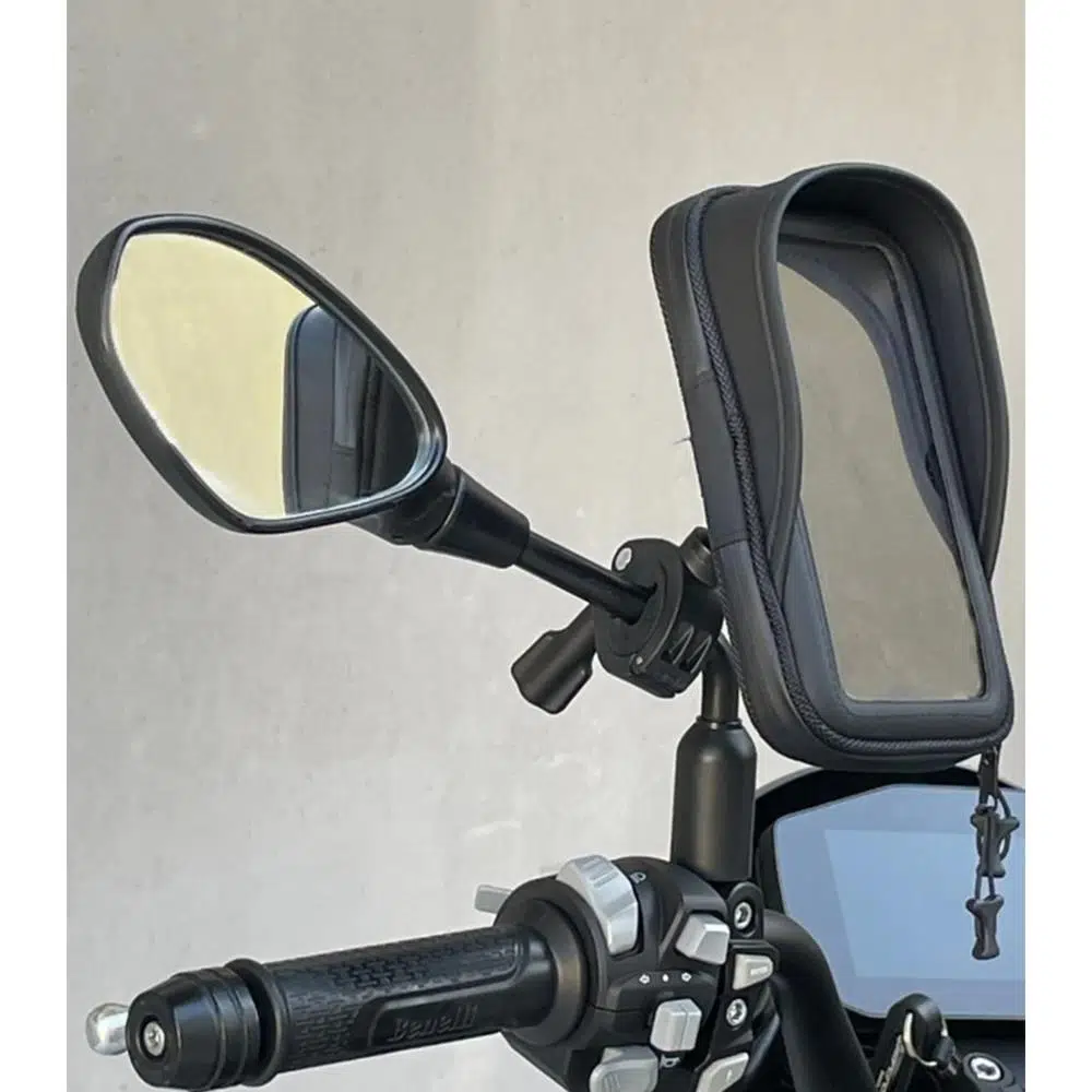 Arka kaydırmalı bağlantı aparatıyla donatılan bu telefon tutucu, çift montaj sistemi sunar: sürüş tercihlerinize göre motosikletinizin gidonuna veya aynaya kolayca monte edilebilir. 360° dönebilme özelliği, telefonunuzun yönünü dilediğiniz gibi ayarlamanıza olanak tanır.