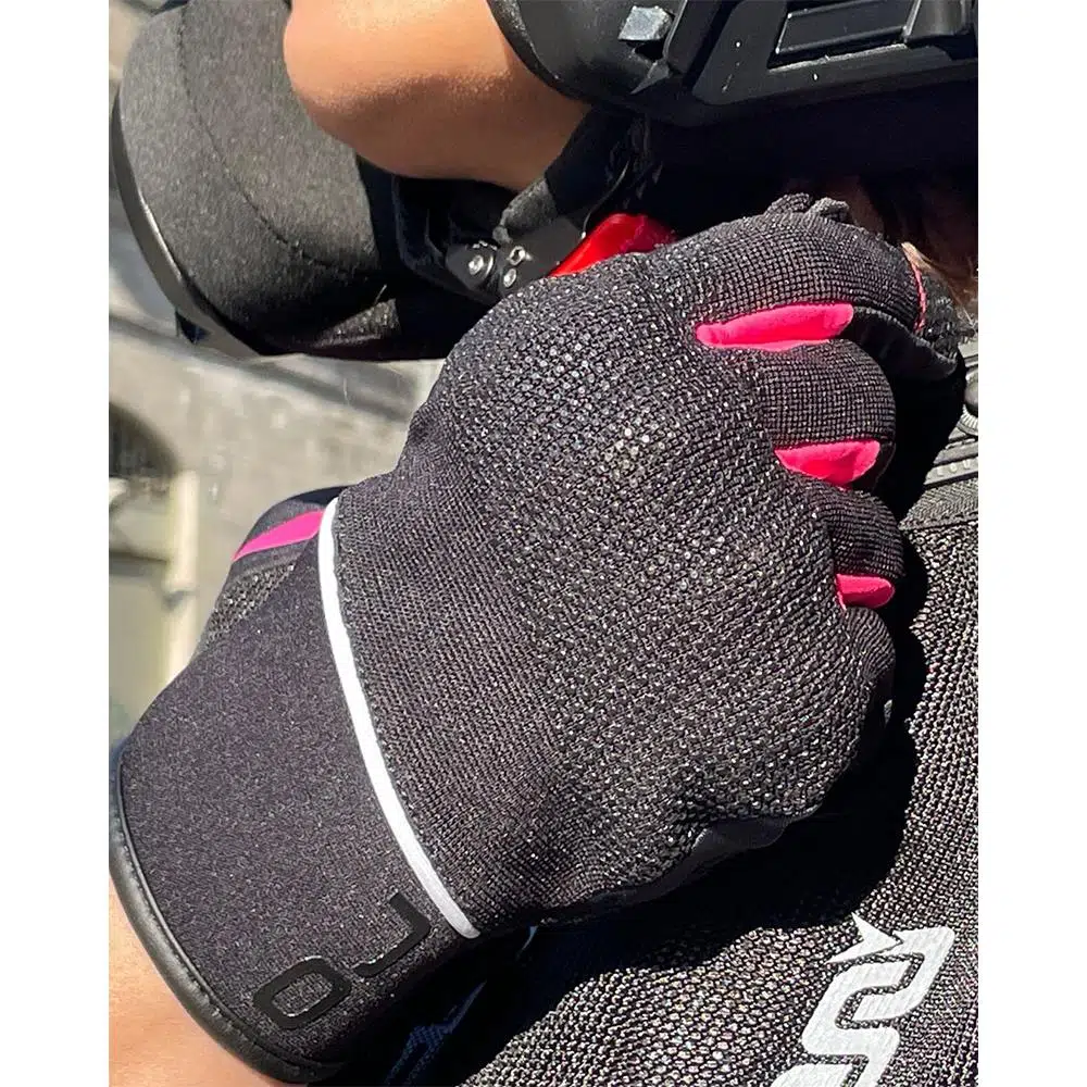 OJ LUCE SİYAH/PEMBE ÇİZGİLİ YAZLIK KORUMALI BAYAN MOTOSİKLET ELDİVENİ XL