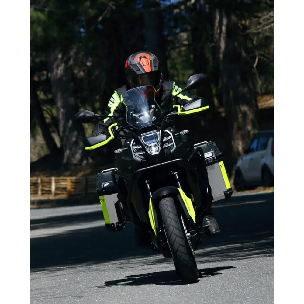 Dış yüzeyi, su itici işlem görmüş 600D polyesterden yapılmış. Dirseklerdeki elastik paneller hareket konforunu artırıyor. Kollar ve ceket altındaki hacim ayarlayıcılar ile boyun kapama, 5 pozisyonda ayarlanabiliyor, bu da motosikletçinin ceketini kişiselleştirmesine olanak tanıyor.