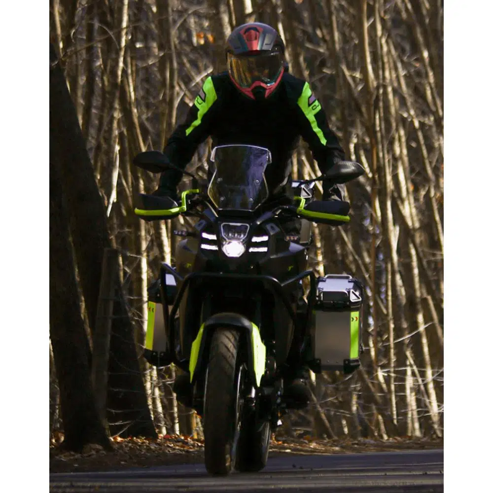 Kollardaki diğer ayarlamalar, daha fazla havalandırma için tek tarafa açılan bir fermuar ve hacim ayarı için strapli flap içeriyor. Ceket, gece kullanımı için görünürlüğü artıran yansıtıcı şeritler, ceketle cilt teması önlemek için neoprenden bir yaka, ceket-pantolon bağlantısı için arka kemer ve SAFE TECH omuz ve dirsek korumaları (dirsek yükseklik ayarı yapılabilir) ile tamamlanıyor.