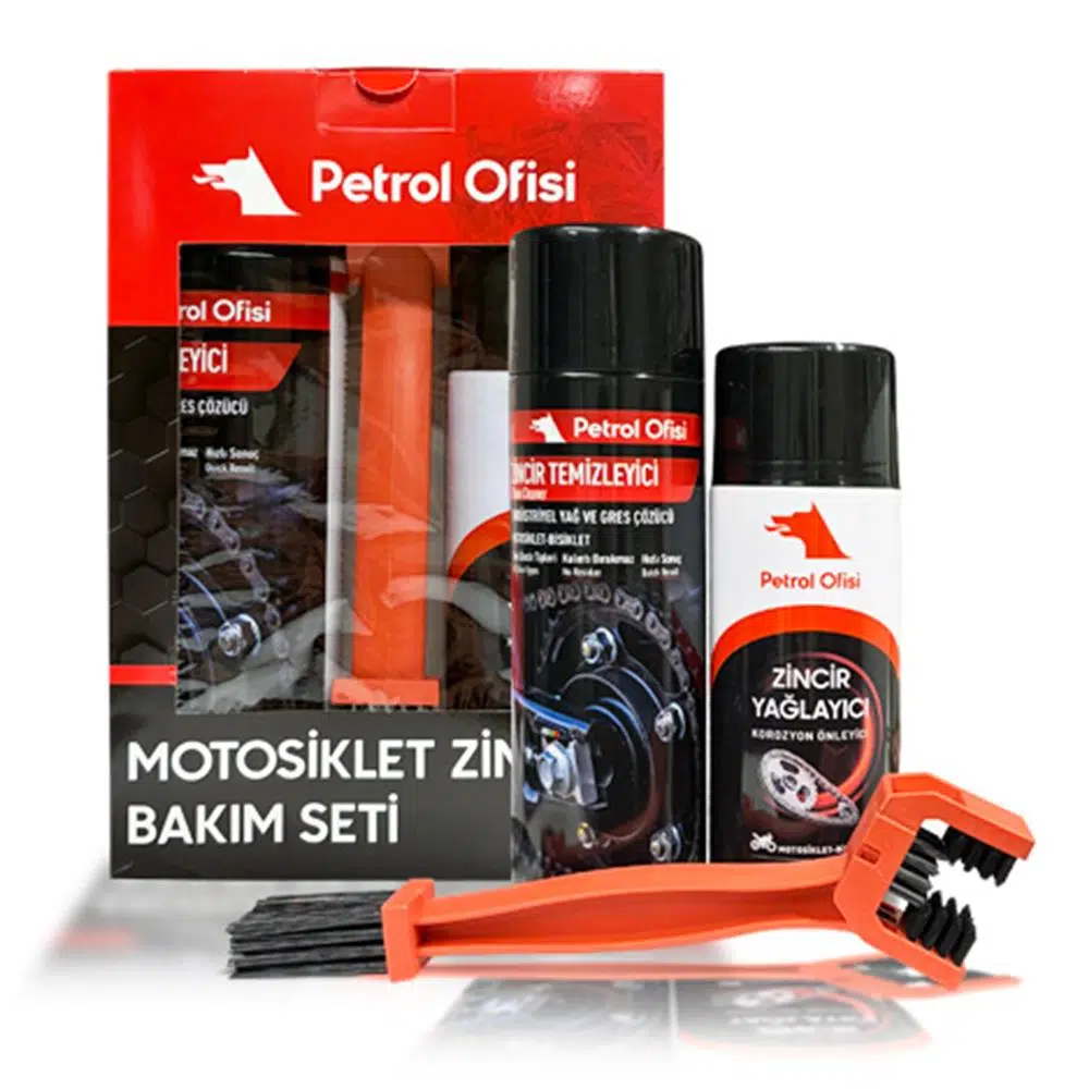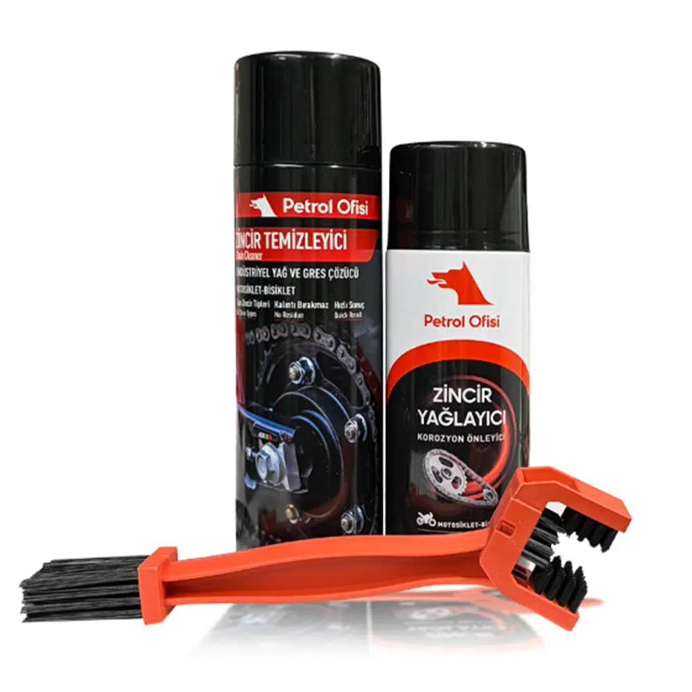 Petrol Ofisi Zincir Temizleme&Zincir Yağlayıcı,ve Zincir Temizleme Fırçası Seti, motosiklet zincirinin hem temizliği hem de yağlanması için ideal bir bakım çözümüdür.
