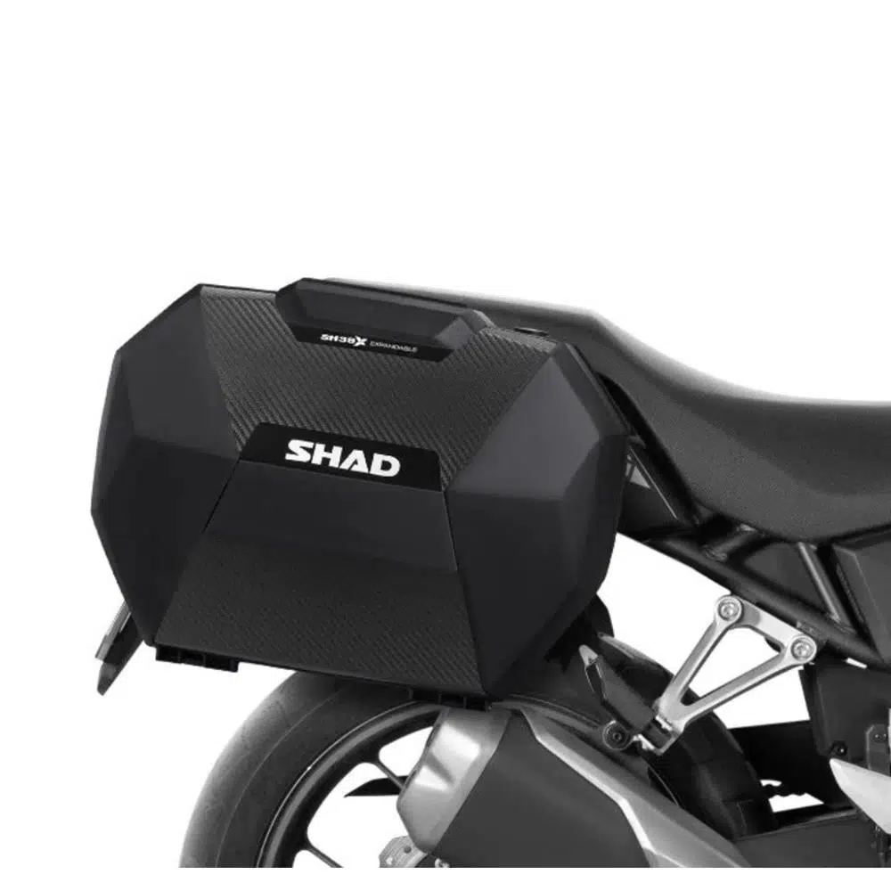 SHAD 3P kiti, motosikletin her iki yanına bağlanan, bagajı 2 yönde destekleyen 3 bağlantı noktası sağlayan ve geleneksel dikdörtgen, hacimli çerçeveye ihtiyaç duymayan, görünmeyen bir L şeklinde kol içerir. Bu, daha hafif bir bagaj rafı ile daha kolay montaj ve diğer geleneksel bagaj montaj kitlerine göre önemli ölçüde daha az dikkat çekici bir çözüm sunar.