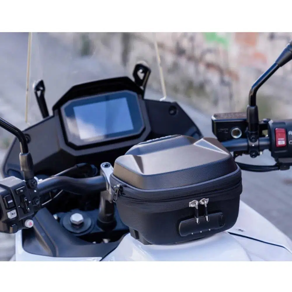 Bu, tamamen kilitlenebilir bir versiyondur ve tank çantası motosiklete kilitlenebilir. Ayrıca fermuarlar, kombine anahtarlı kilit ile kilitlenebilir.