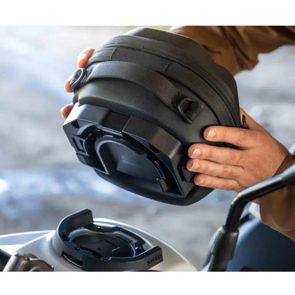 E03CLP Click Sistemi Kilitli Tank Çantası, SHAD’ın Click Sistemi serisindeki premium giriş seviyesi tank çantasıdır. Günlük seyahatler için mükemmel bir aksesuar olarak tasarlanmış olup, telefon, cüzdan, seyahat belgeleri ve diğer eşyalar için ideal boyuttadır.