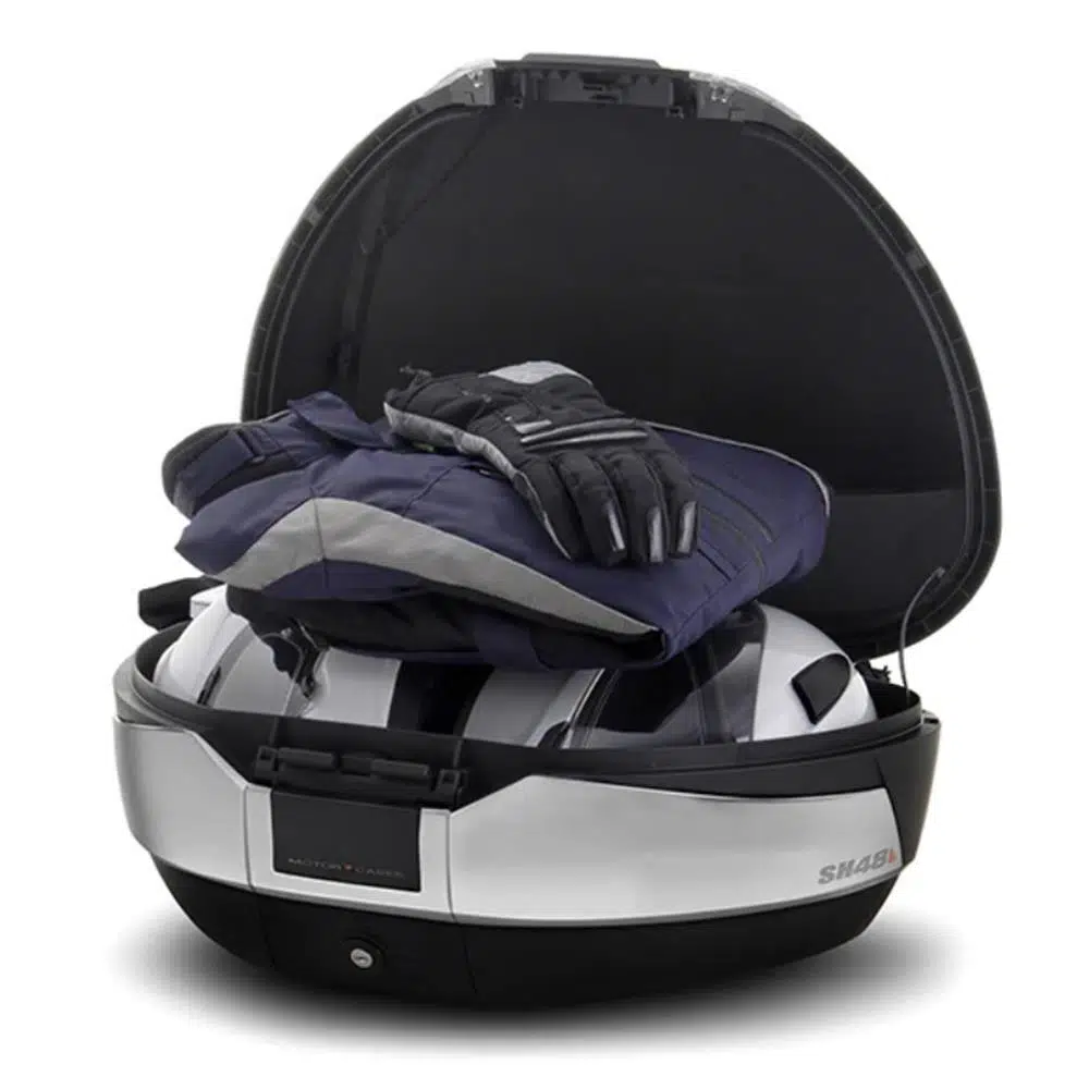 SH48 üst kutusu, tamamen su geçirmez, aerodinamik, estetik olarak tasarlanmış, tamamen yuvarlak bir gövdeye ve gri yan bantlara sahiptir. Entegre reflektörler ve renk değiştirme seçeneklerine sahiptir. SH48 üst kutusu, ultra hafiflik için minimal kalınlıkta yüksek darbe direncine sahiptir.