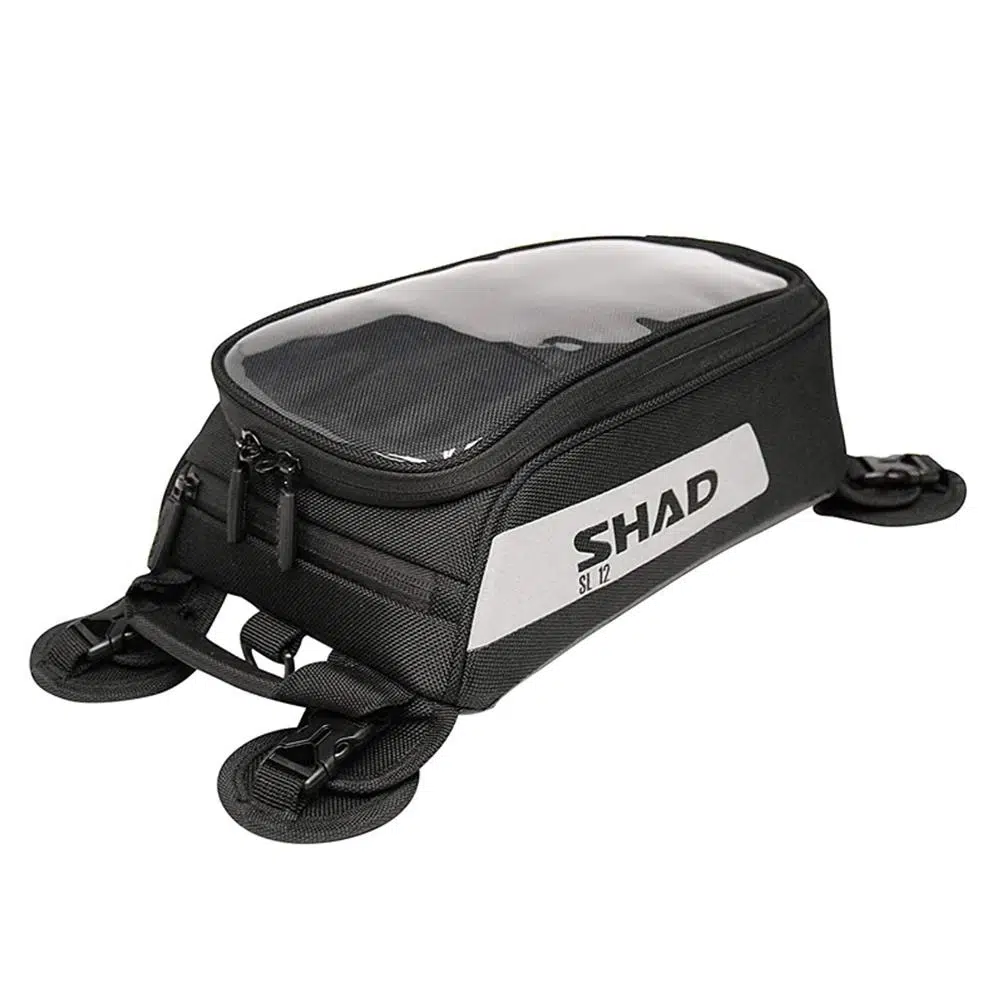 SHAD SL12M tank çantası, dahil edilen 4 çıkarılabilir mıknatıslar aracılığıyla monte edilir ve bu sayede tank çantası tüm motosikletlerle uyumludur.