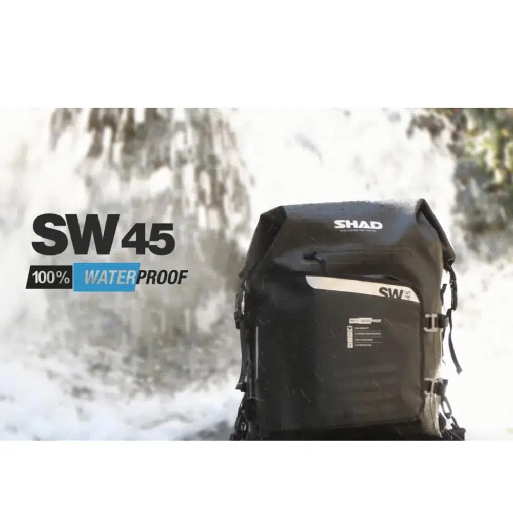 SHAD SW45, PVC, üç katmanlı branda (tarpaulin) ve file kumaştan üretilmiştir. Bu da onu dünyanın herhangi bir yerinde, karşılaşabileceğiniz en zorlu koşullarda bile ideal bir tur aksesuarı haline getirir.