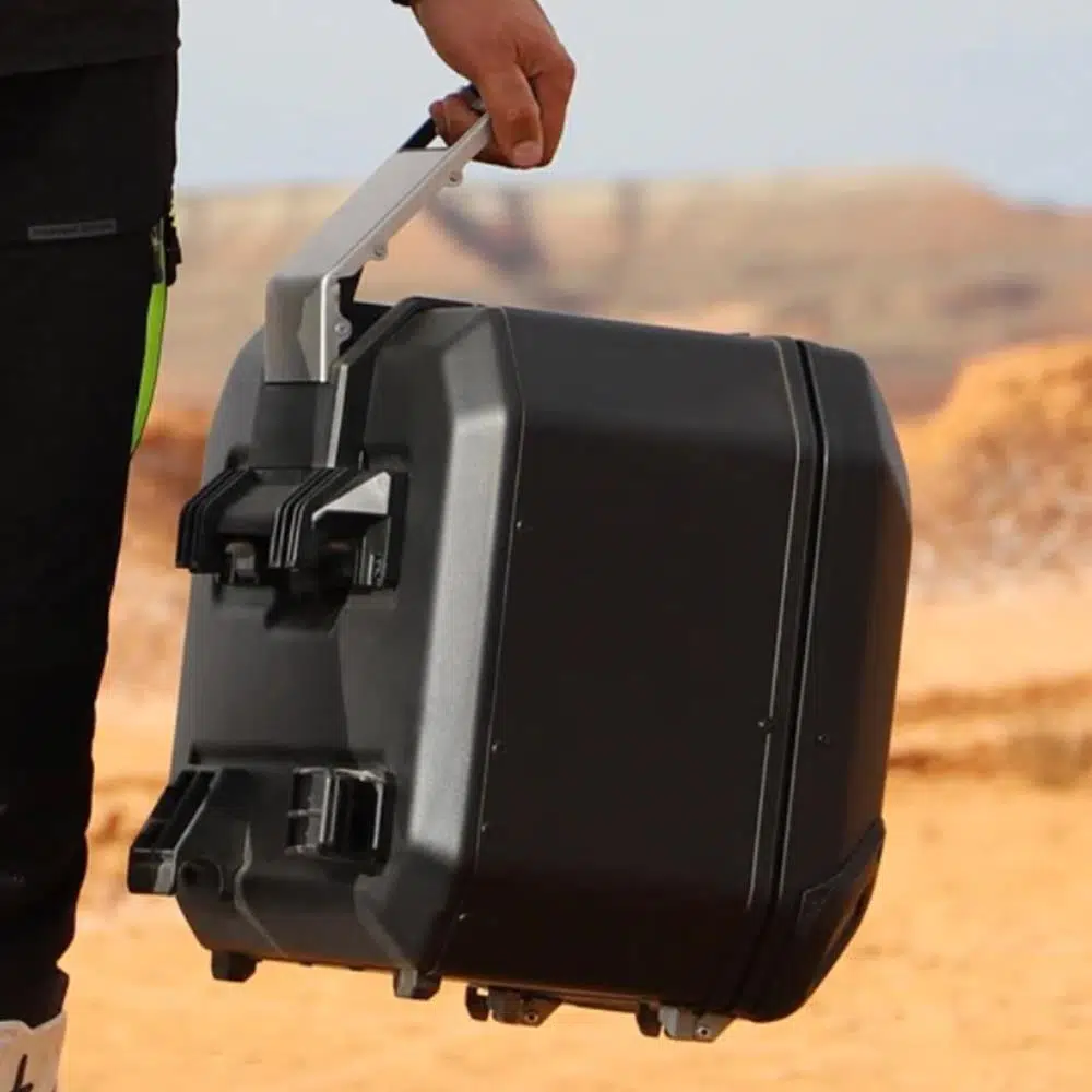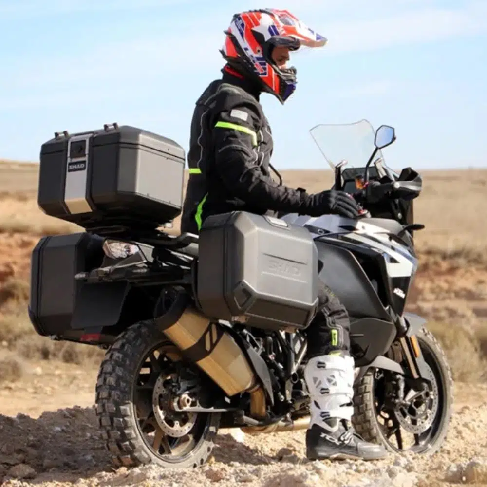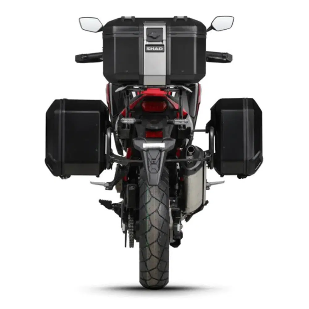 SHAD Terra yan çantaları, yeni 4P yan çanta montaj sistemi ile kullanılmak üzere tasarlanmıştır ve bir kez monte edildikten sonra, tüm eşyalarınıza kolay erişim ve tam görünüm sağlayan yan açılı sistem sunar. Bu sistem, eşyalarınızı yerinde tutmak için (yol dışında katlanabilen) paket tepsisi ve ağ restrains sistemi ile birlikte gelir.