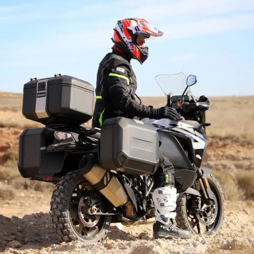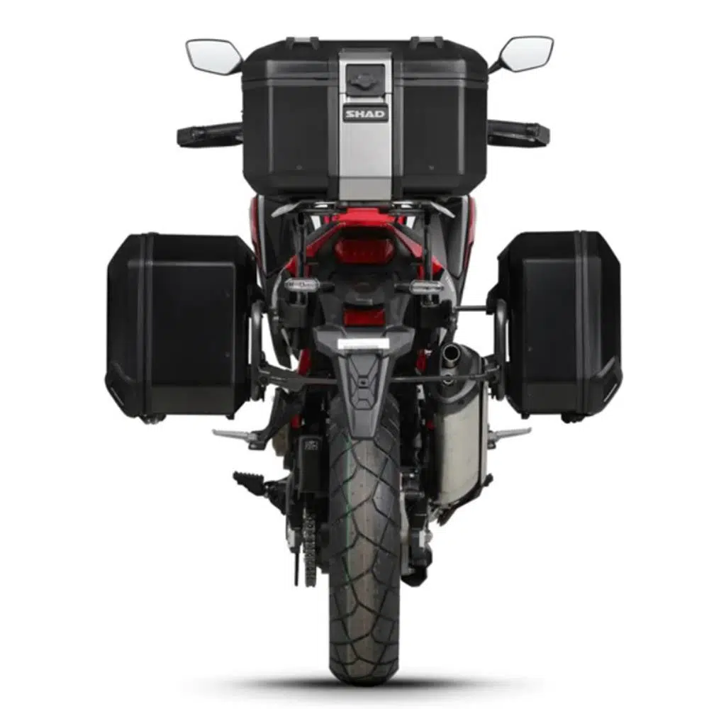 SHAD Terra yan çantaları, yeni 4P yan çanta montaj sistemi ile kullanılmak üzere tasarlanmıştır ve bir kez monte edildikten sonra, tüm eşyalarınıza kolay erişim ve tam görünüm sağlayan yan açılı sistem sunar. Bu sistem, eşyalarınızı yerinde tutmak için (yol dışında katlanabilen) paket tepsisi ve ağ restrains sistemi ile birlikte gelir.