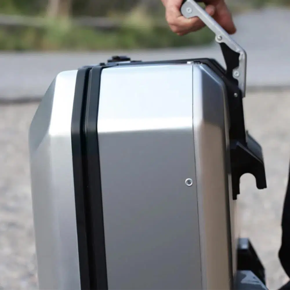 SHAD TR36 yan çantası, dövme alüminyum alaşımdan yapılmıştır, daha güçlü ve hafif bir alüminyum türü olan bu alaşım, çantanın daha ince ve hafif olmasına izin verirken daha ağır çantalardan daha dayanıklı olmasını sağlar.