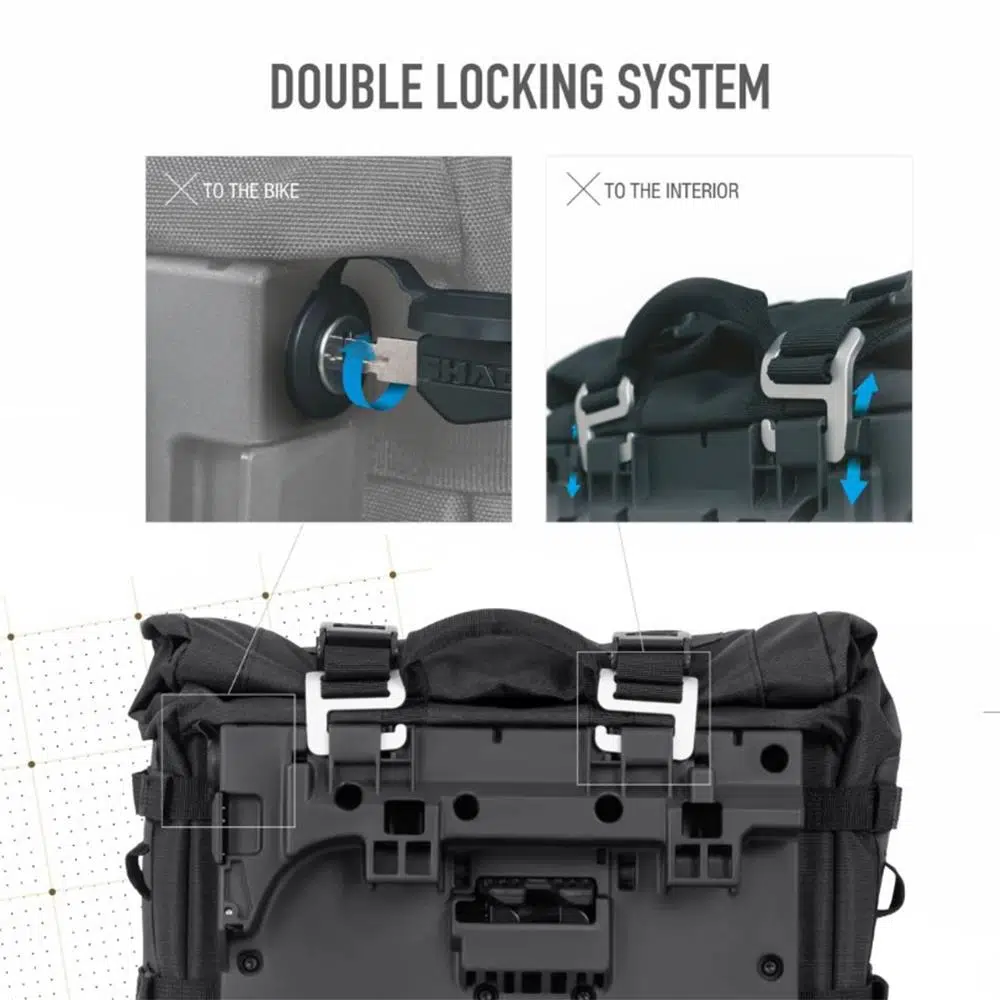 SHAD TR40 Soft Adventure Yan Çantalar, gelişmiş güvenlik sağlayan çift kilit sistemi ile donatılmış, ideal bir depolama çözümüdür.