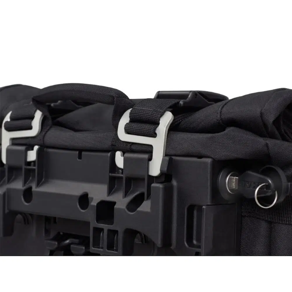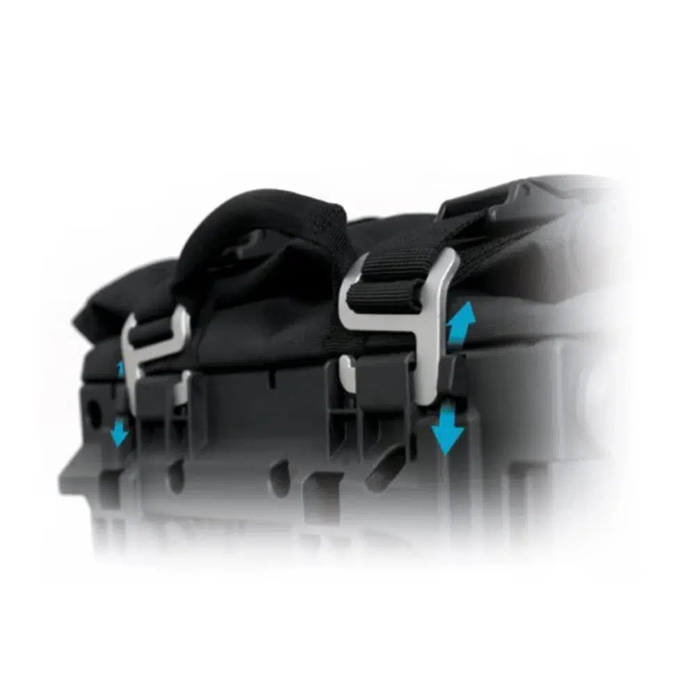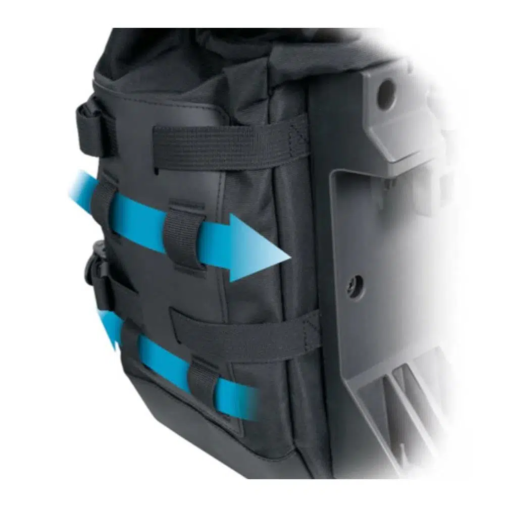 - Ayarlanabilir Tokalar: 6 Duraflex tokası, yük boyutuna göre çantaları ayarlamanızı sağlar, böylece eşyalarınız güvenle yerinde durur.