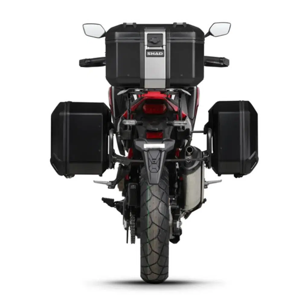 SHAD Terra yan çantaları, yeni 4P yan çanta montaj sistemi ile kullanılmak üzere tasarlanmıştır ve monte edildikten sonra, tüm eşyalarınıza kolay ve tam erişim sağlayan yan açılı bir sistem sunar. Bu sistem, eşyalarınızı yerinde tutmak için paket tepsisi ve ağ restrains sistemi ile birlikte gelir.