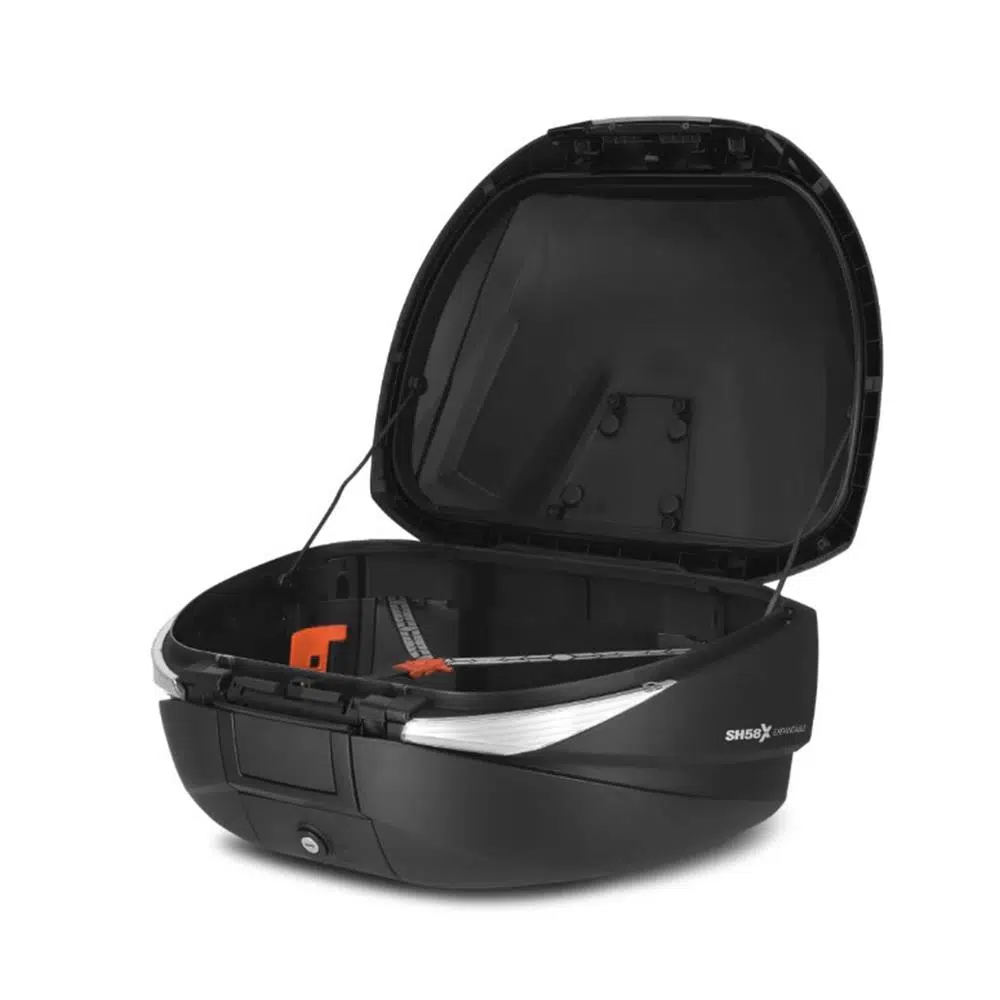 SH58X arka çanta tamamen su geçirmez, aerodinamik ve estetik bir tasarıma sahiptir. Yuvarlatılmış gövdesi ve düz üst yüzeyiyle modern bir görünüme sahiptir. Karbon kapak, entegre reflektörler ve renk değiştirme sistemiyle birlikte gelir. İnce yapısına rağmen yüksek darbe dayanımı sunar ve son derece hafiftir.