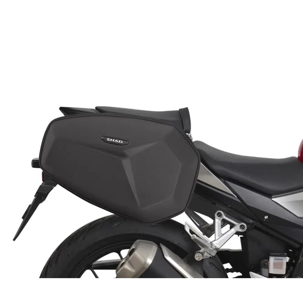 Shad H0CB51SR, Honda CB500F, CBR500R ve CB500 Hornet (2019–2025) modelleri için tasarlanmış yan çanta montaj kitidir. Bu kit, motosikletin yanına Shad marka yan çantaların güvenli ve estetik bir şekilde monte edilmesini sağlar. Dayanıklı çelik malzeme ve toz boya kaplama ile uzun ömürlü kullanım sunar.